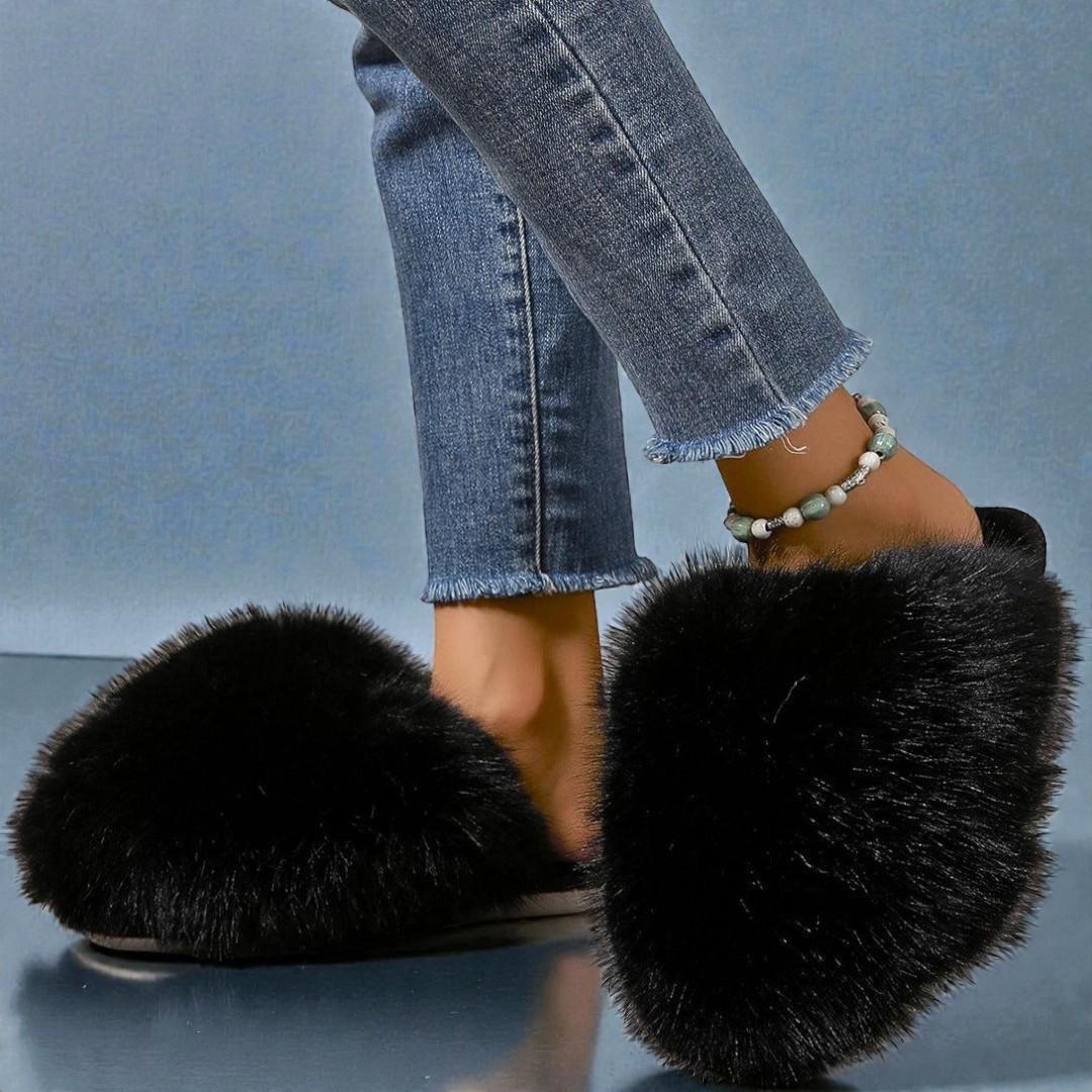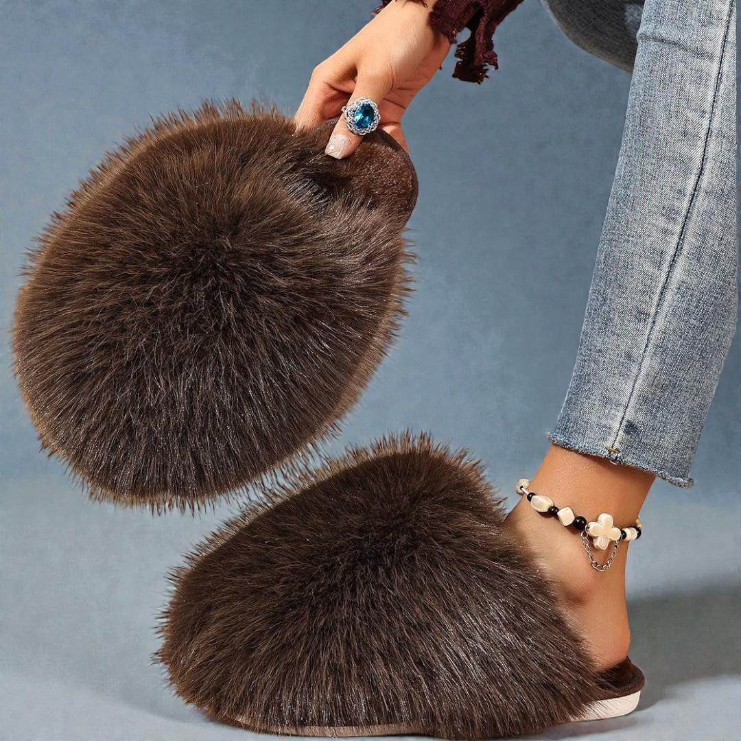 Puszyste futerko szybko ogrzewa stopy i daje przyjemne uczucie miękkości po całym dniu. Lekka konstrukcja ułatwia chodzenie po domu, a szeroka cholewka pozwala łatwo wsunąć stopę. Idealne na chłodne poranki i wieczory.
